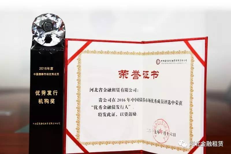 2016年,河北省金融租賃有限公司發(fā)行首單金融債5億元,憑借良好的經(jīng)營管理水平和信用評級表現(xiàn),受到了投資者及主管部門的充分認可,確立了專業(yè)、誠信的市場形象,贏得了良好的市場聲譽。這一榮譽的獲得充分反映了銀行間債券市場成員對河北金租的廣泛認可,進一步鞏固了河北金租在資本市場的良好信用形象,提升了公司市場知名度、影響力,也為公司后續(xù)從資本市場融資創(chuàng)造了良好的市場環(huán)境和條件。