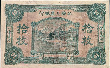 1931年11月,湘鄂贛省蘇維埃政府為統(tǒng)一貨幣,將各縣市銀行逐步統(tǒng)一為鄂東南工農(nóng)銀行;在平江、瀏陽、修水、銅鼓、宜春、萬載地區(qū)統(tǒng)一為湘鄂贛工農(nóng)銀行。由于受國民黨的經(jīng)濟(jì)封鎖,湘鄂贛蘇區(qū)一些物資價格上漲,財政赤字增加,使銀行發(fā)行貨幣增多。到1932年4月,省工農(nóng)銀行已發(fā)行紙幣30萬元,但準(zhǔn)備現(xiàn)金僅4萬余元,以致發(fā)出的紙幣無法兌現(xiàn),曾發(fā)生拒用現(xiàn)象。為此,湘鄂贛省蘇維埃政府于同月作出決定,省工農(nóng)銀行不再發(fā)行貨幣,已發(fā)行的限3個月內(nèi)全部收回,所需銀元10萬元由各縣蘇維埃政府和紅十六軍分擔(dān)籌措。貨幣收回后,湘鄂贛省工農(nóng)銀行撤銷,另成立中華蘇維埃共和國國家銀行湘鄂贛分行。