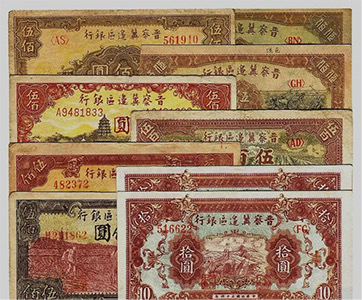 晉察冀抗日根據(jù)地,是中國共產(chǎn)黨在抗日戰(zhàn)爭(zhēng)時(shí)期于敵后開創(chuàng)的第一個(gè)抗日根據(jù)地。晉察冀邊區(qū)政府于1938年2月成立晉察冀邊區(qū)銀行,在山西五臺(tái)縣石咀鄉(xiāng)的普濟(jì)寺內(nèi)開始營業(yè)。邊區(qū)銀行的貨幣發(fā)行后,清除了地方發(fā)行的各種鈔票,統(tǒng)一了邊區(qū)的貨幣市場(chǎng),支持了抗日戰(zhàn)爭(zhēng),支持了生產(chǎn),改善了人民生活,深受抗日根據(jù)地軍民的歡迎。晉察冀邊區(qū)票當(dāng)時(shí)在山西、河北、察哈爾省、熱河省以及遼寧西部、內(nèi)蒙古、山東德州地區(qū)等敵后抗日根據(jù)地流通,流通人口達(dá)3000多萬人。直到1948年晉察冀邊區(qū)銀行與冀南銀行合并,成立華北銀行,晉察冀邊區(qū)票才停止流通使用。