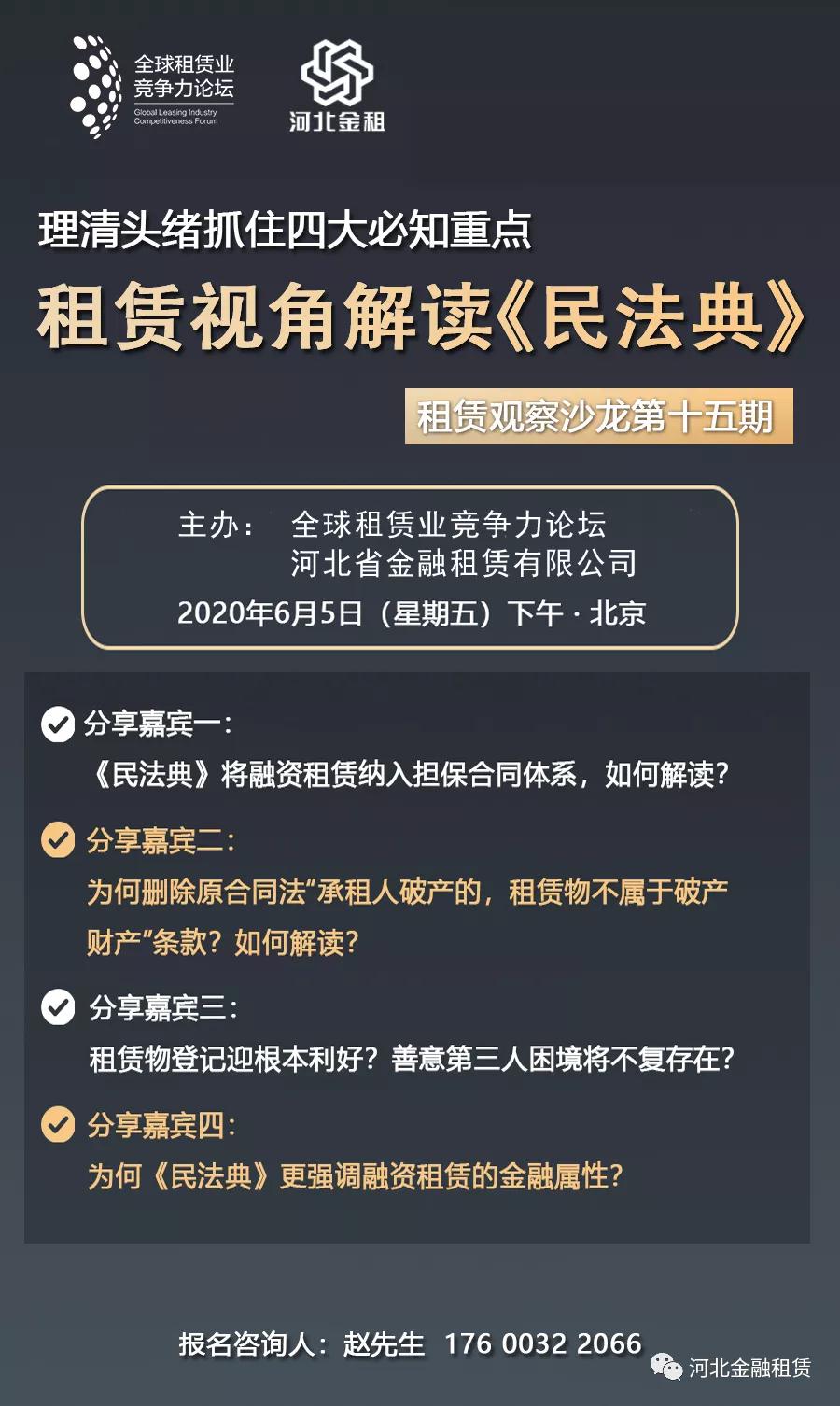 《中華人民共和國(guó)民法典》近日正式公布,標(biāo)志我國(guó)“民法典時(shí)代”到來(lái)?!睹穹ǖ洹飞婕岸囗?xiàng)與融資租賃密切相關(guān)的法律條款,擴(kuò)大了動(dòng)產(chǎn)擔(dān)保合同的范圍,將融資租賃納入擔(dān)保合同,將對(duì)融資租賃業(yè)的經(jīng)營(yíng)活動(dòng)產(chǎn)生深遠(yuǎn)影響。 6月5日下午,全球…